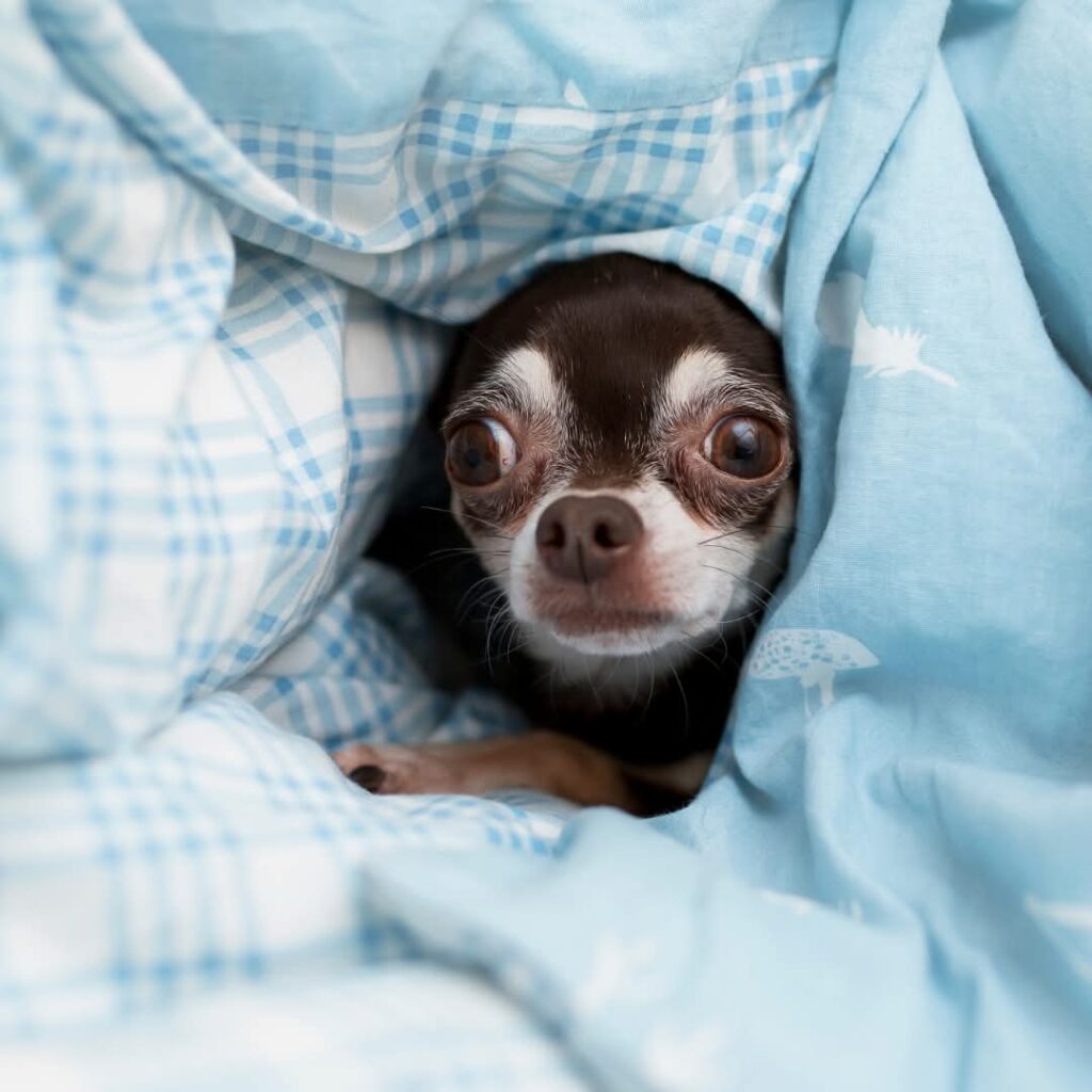 - Piiloutuminen: Koira voi yrittää piiloutua huonekalujen alle, kylpyhuoneeseen tai muihin turvalliseksi kokemiinsa paikkoihin.