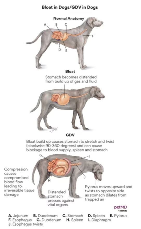 Kun mahalaukku on molemmin puolin suljettu, kaasu ja neste eivät pääse ulos, ja mahalaukku turpoaa entisestään. Tämä laajentuva mahalaukku alkaa painaa muita vatsaontelon elimiä ja suuria verisuonia, mikä aiheuttaa vakavia ongelmia: