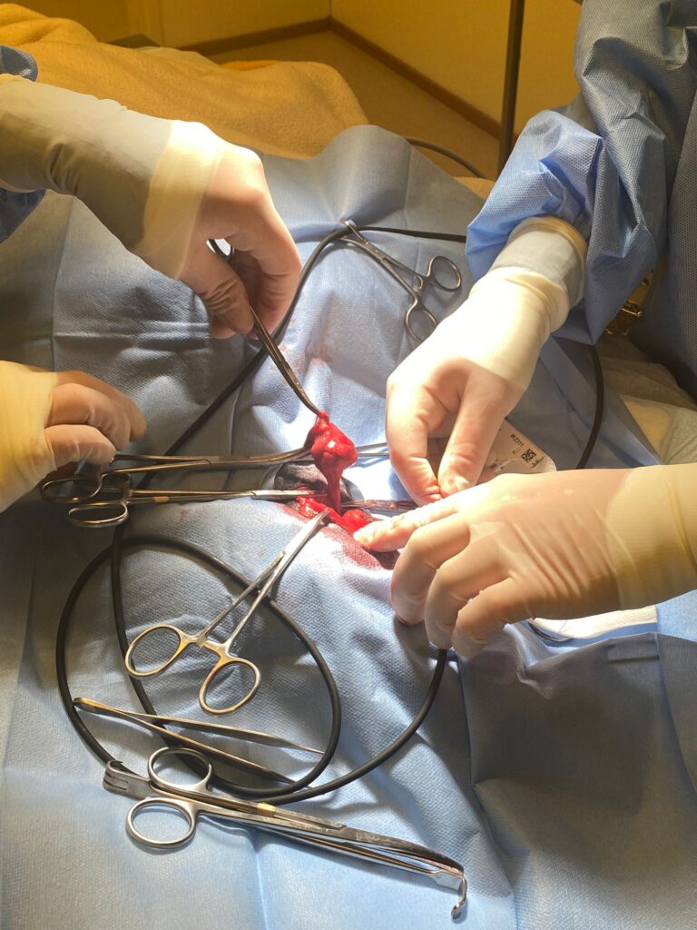 - Viilto tehdään korvan alapuolella viistosti. Mandibular ja sublingual sylkirauhaset irrotetaan varovasti ympärillä olevista kudoksista poistetaan kirurgisesti. Klinikallamme käytämme polttoa (kudosfuusiolaite) verisuonten verenvuodon tyrehdyttämiseksi.