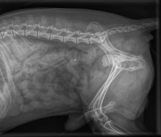 Eläinklinikka Tsempissä Rokin röntgenkuvauksella varmistettiin virtsakiven olevan yhä paikoillaan. Jo röntgenkuvauksella havaittiin, että Rokin virtsarakko sijaitsi epätyypillisen takana ja että virtsarakossa oli yksi hyvin iso ja muhkurainen virtsakivi.